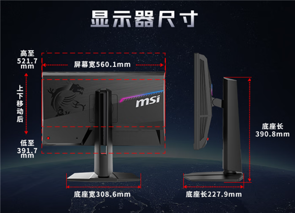 显示器配备多功能人体工学支架,支持升降、俯仰、左右旋转及垂直旋转,支持4:3等经典比例一键切换。