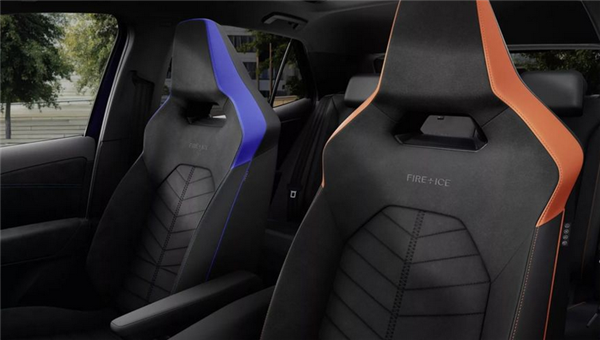 车内更夸张,驾驶席火焰红、副驾冷静蓝,撞色撞得明目张胆,运动座椅还保留了博格纳夹克拉链设计。