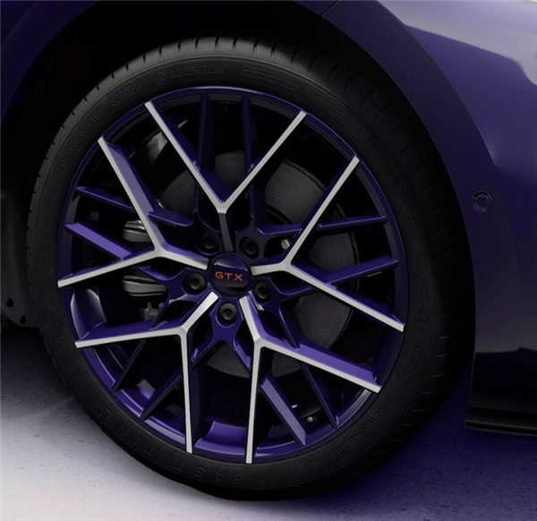 紫外金属漆在太阳底下泛着冷光,火焰红的车顶条纹从A柱一路烧到尾翼,C柱贴着透明哑光贴纸,GTX|FIRE & ICE字母大摇大摆地躺在侧裙,20英寸Locarno轮毂像冰刀一样亮。