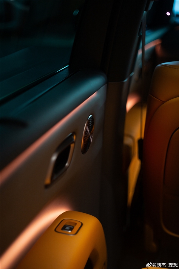 此前,理想汽车副总裁刘杰公布了两张理想i8的细节实拍图,在暗光环境下,全新设计的氛围灯,搭配门板上的音响、门把手金属装饰件,高级感满满。
