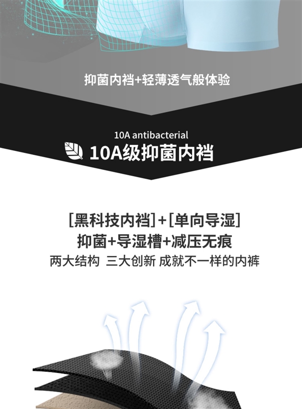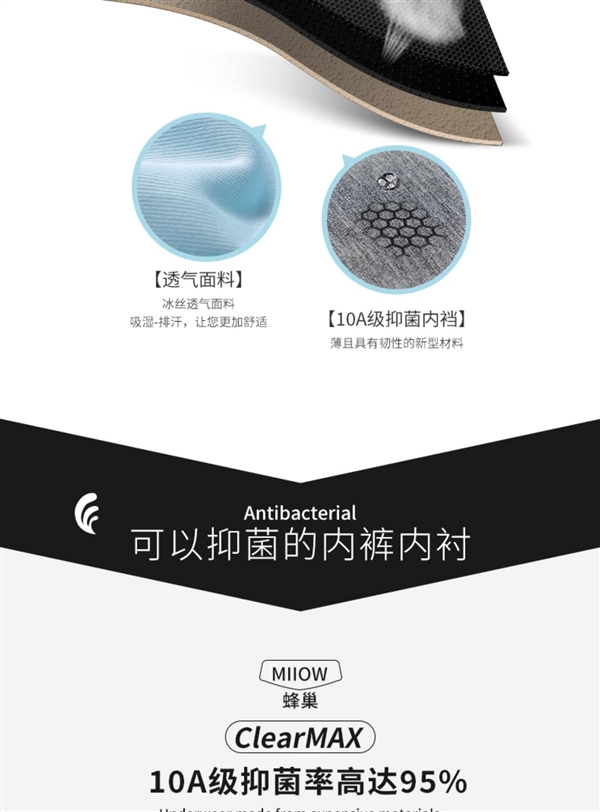 冰丝面料拒绝闷热,AAA抗菌内档,健康透气,舒适加倍。
