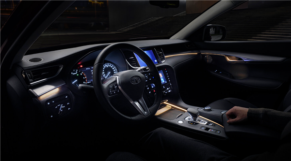 内饰方面变化不大,基本沿用现款设计,中控台采用上下双屏设计,并配备有造型小巧的电子换挡杆,此外,还配备有三辐式方向盘、环绕门板及中控台的银色装饰条等。