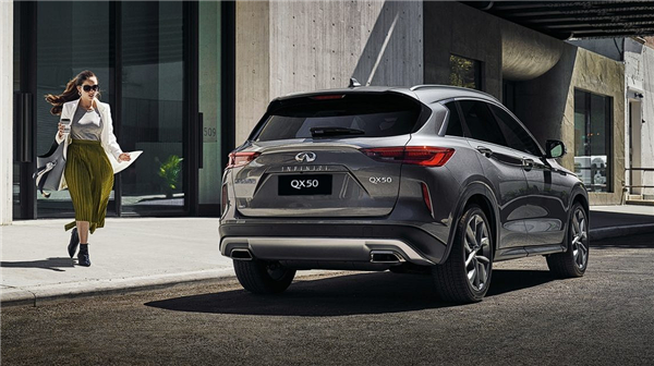 至于动力,新款QX50全系搭载一台可变压缩比的2.0T涡轮增压发动机,其最大功率可达192千瓦,峰值扭矩380牛・米,匹配CVT无级变速箱,高配提供适时四驱系统。