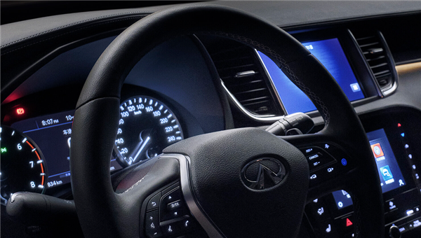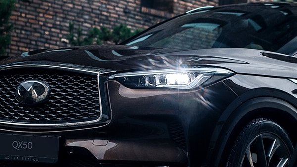 此次上市的新款QX50换装了新的设计语言,配有海浪纹中网、贝壳型引擎盖,还使用了全LED自动前大灯及带智能远近光辅助系统(HBA)的星际矩阵大灯。