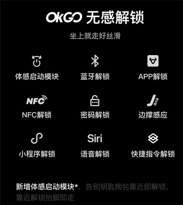 配有5英寸LED智能仪表,可显示车辆关键数据,还支持多种无钥匙解锁方式,骑行更便捷。
