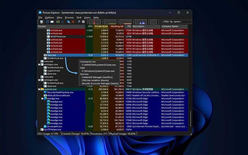 查看 lsass.exe 进程