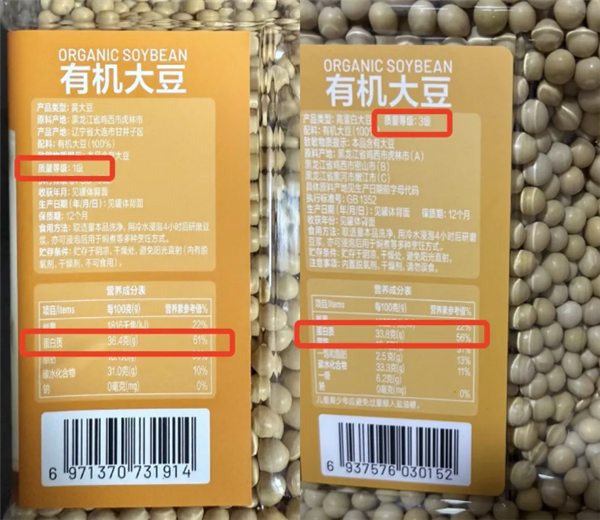 山姆方面有关负责人则解释,“MM有机大豆”已从原先的普通大豆更换为高蛋白大豆品种。他们援引最新的大豆国家标准《GB 1352-2023大豆》进行计算,称该产品的蛋白质含量达到41.1g/100g,符合高蛋白大豆的国家标准。该负责人强调,虽然新品满足的是高蛋白大豆的三级标准,但其品质参数仍然达到了普通大豆的一级标准。