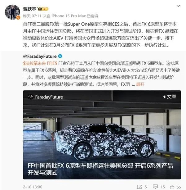 其实这也并非 FF 首次出现车型 “ 撞脸 ”,FF 在 2 月还公布了一台从中国运往美国总部的原型车,说是 25 年底会量产的 FX6,也是一台走辆车。就是跟这个上汽的智己 LS7 “ 很像 ”。