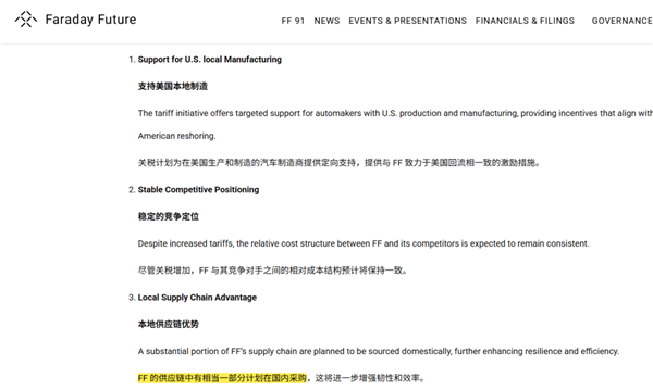 当然,中国产零部件的价值,不能超过整车的 25 %,不然还是要被 tax 嗷。所以贾老板这车理论上得在美国本地采购不少零件。