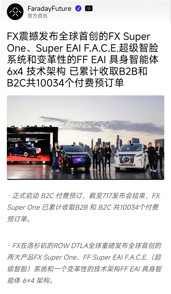 就连小特朗普,都在个人播客中力挺 FF ,称 “ 为 FF 这样的本土 AI 与科技创新者点赞 ”。。。