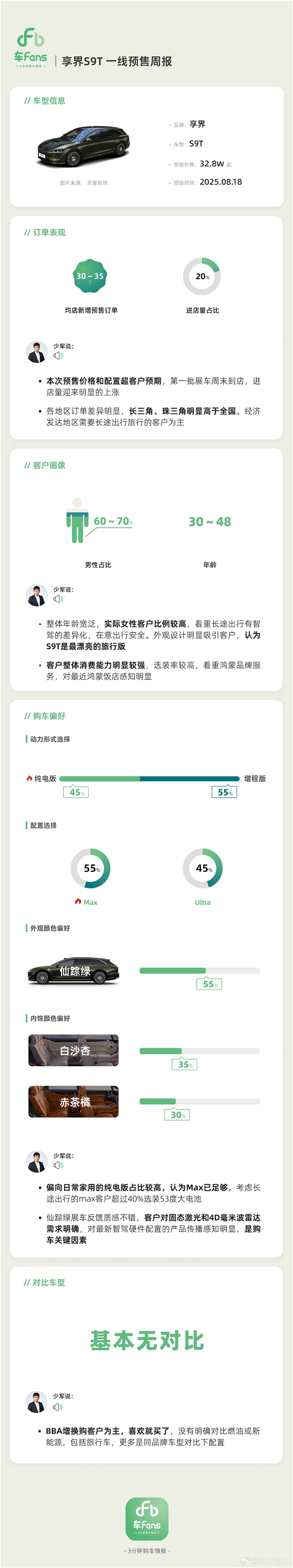 整体年龄宽泛,实际女性客户比例较高,看重长途出行有智驾的差异化,在意出行安全。