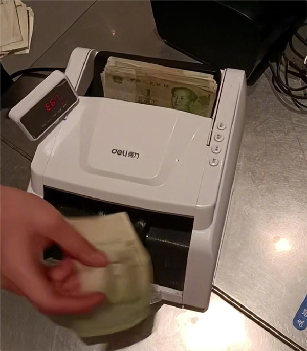 于是,矛头就指向了店里使用的是“得力”牌验钞机。
