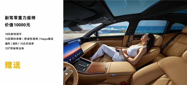 舒适性方面,该车全系标配副驾驶零重力座椅,满足临时休憩的使用需求,并配有6.2升容量的压缩机冷暖箱、华为悦彰音响卓越系列顶级音响。
