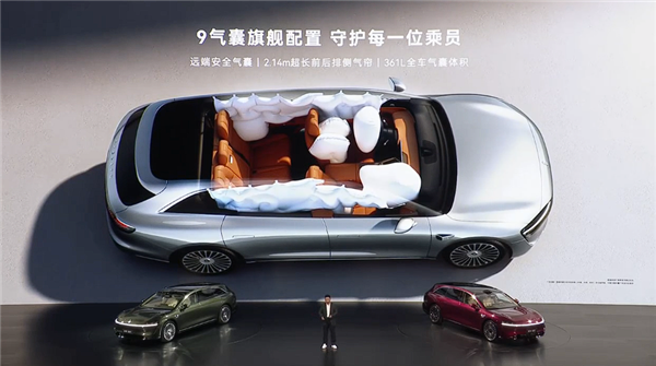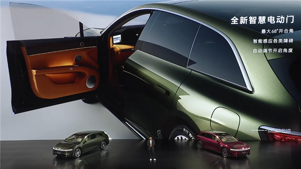其长宽高分别为5160/2005/1492mm,轴距为3050m,定位C+级,提供三种不同样式的轮圈,使用无边框车窗、智慧电动感应车门,且支持手势控车。