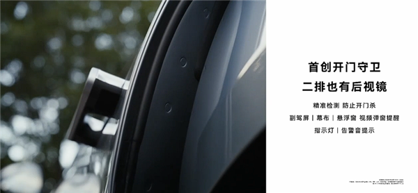 主动安全方面,享界S9T搭载全维防碰撞4.0,无惧雨雾尘天气,eAES边刹边让,避障更灵活,首创开门守卫,支持屏幕智能弹窗、语音提醒,降低开门杀风险。